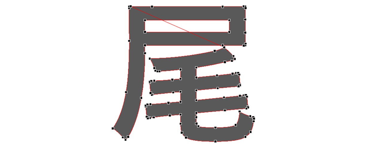 実際に文字のアウトラインを見てみると、頂点の数は必要最低限に抑えられていることが分かるので、文字に使われている頂点の数や位置を参考にして作ってみるのもいいと思います。